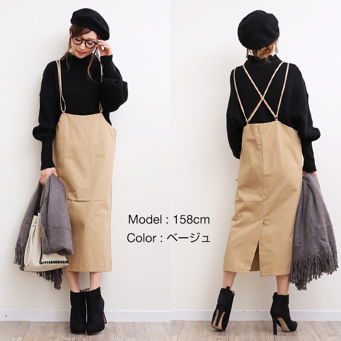 「即納」ワンピース キャミ レディース ワンピ 綿 コットン ツイル キャミソール サロペ スカート